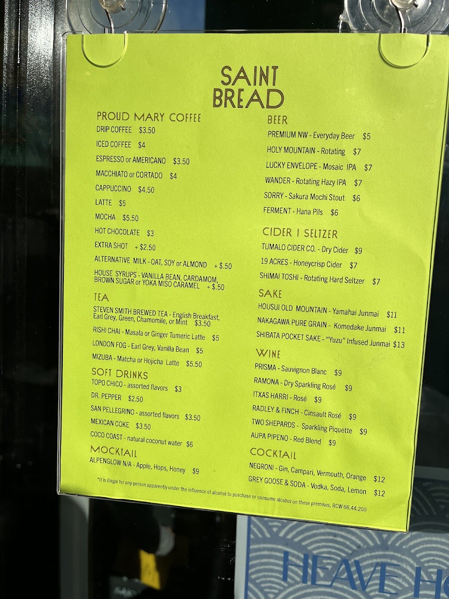 Complement your meal with a refreshing drink like the Nowhere Mocktail or the local Seattle Cola. At Saint Bread, each dish reflects a commitment to quality, leaving your taste buds craving more.